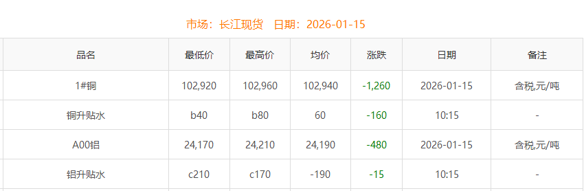 2026年01月15日铜价